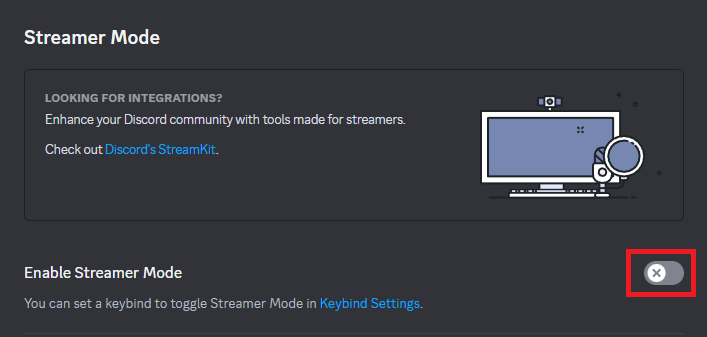 Μπορείτε να έχετε μια πιο εστιασμένη εμπειρία ροής μετά την ενεργοποίηση της λειτουργίας streamer, καθώς επίσης σβήνει τις ειδοποιήσεις για την ελαχιστοποίηση των περισπασμών, απενεργοποιεί τους ήχους και τα γραφικά και ενημερώνει αυτόματα την κατάσταση Discord, έτσι ώστε οι άνθρωποι να γνωρίζουν ότι ρέουν.