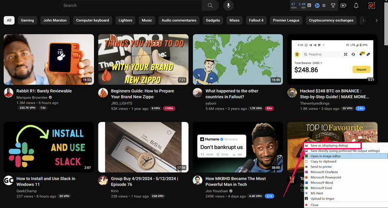 1.Αφού λάβετε ένα στιγμιότυπο οθόνης, κάντε κλικ στοΑποθήκευση AS (Εμφάνιση διαλόγου)επιλογή στο μενού περιβάλλοντος.