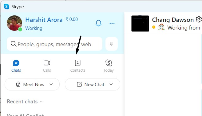 Έχετε αποθηκεύσει τώρα τις επαφές σας στο βιβλίο επαφών του Skype. Τέλος, μπορείτε τώρα να συνομιλήσετε μαζί τους μέσω συνομιλίας. Ακολουθήστε λοιπόν τα βήματα για να μάθετε πώς να συνομιλείτε με τις επαφές σας στο Skype:
