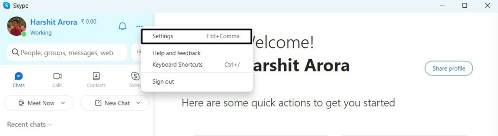 Ένα από τα καλύτερα μέρη για το Skype είναι ότι σας επιτρέπειΤροποποιήστε το UI της εφαρμογήςΣύμφωνα με τις προτιμήσεις σας. Μπορείτε να αλλάξετε το θέμα και τη λειτουργία του χρώματος του UI, την πλαϊνή μπάρα και πολλά άλλα. Δοκιμάστε λοιπόν τις παρακάτω προτροπές για να αποκτήσετε πρόσβαση στις ρυθμίσεις προσαρμογής του Skype και να τροποποιήσετε τη διεπαφή:
