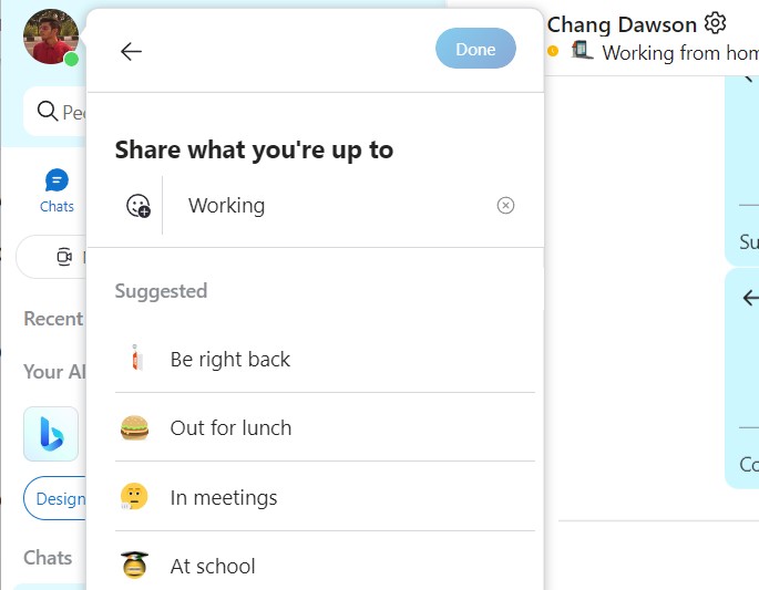 Παρόμοια με το WhatsApp, το Skype σας επιτρέπει επίσηςΜοιραστείτε την κατάστασή σαςμε τις επαφές σας. Για παράδειγμα, μοιράζεστε αυτό που είστε επί του παρόντος. Εκτός από αυτό, μπορείτε επίσης να ορίσετε το προφίλ σας Skype ως ενεργό, μακριά και να μην ενοχλείτε. Μπορείτε να μάθετε να το κάνετε ακολουθώντας τα παρακάτω βήματα: