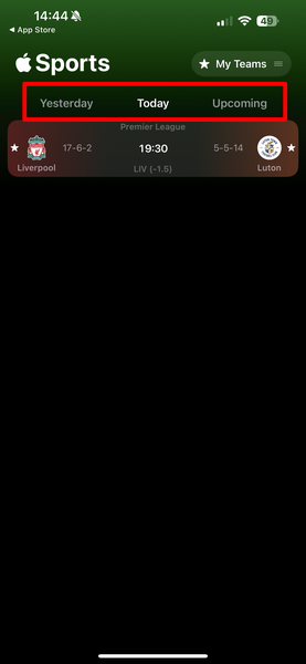 9.Μόλις προσθέσετε όλες τις αγαπημένες σας ομάδες και πρωταθλήματα, μπορείτεΔείτε τα στην αρχική σελίδατης εφαρμογής Apple Sports.