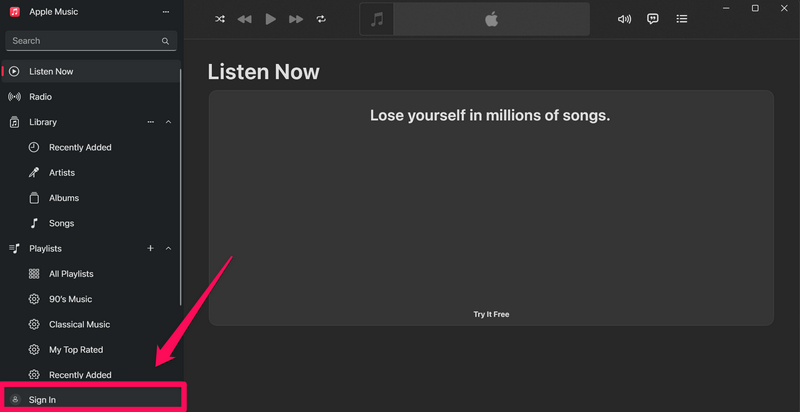 Τώρα, ένα από τα πρώτα πράγματα που πρέπει να κάνετε όταν ξεκινάτε την εφαρμογή Apple Music στο Windows 11 PC ή το φορητό υπολογιστή σας είναι να συνδεθείτε στο αναγνωριστικό της Apple. Μπορείτε να ακολουθήσετε τα βήματα παρακάτω για να το κάνετε αυτό: