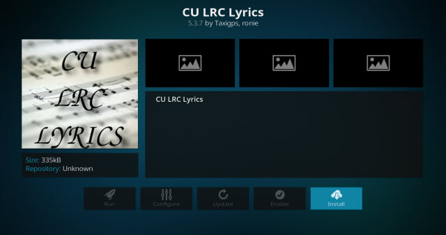 Στο Kodi 17.0, αυτά τα πρόσθετα έχουν το δικό τους τμήμα στο πλαϊνό πίνακα που διευκολύνει τοΔιαχείριση και διαμόρφωση αυτών των πρόσθετων για περιεχόμενο. Ήδη στην προηγούμενη ενότητα έχετε προσθέσει μια απομακρυσμένη πηγή για τη μουσική, εγκαταστήστε ένα πρόσθετο που σας παρέχει και εμφανίζει τους στίχους των τραγουδιών που παίζονται στο Kodi.