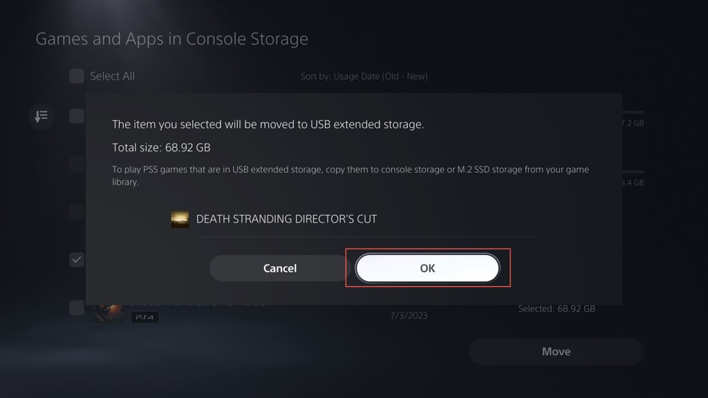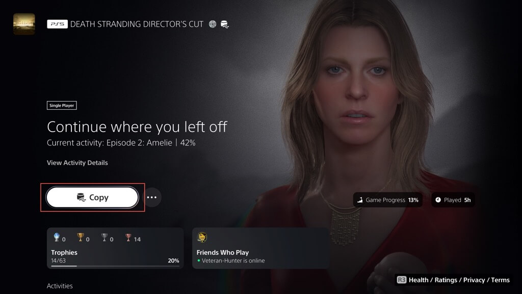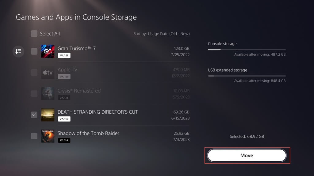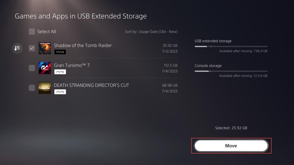 Οι προγραμματιστές σχεδιάζουν παιχνίδια PS5 για να επωφεληθούν από την έντονη απόδοση του εσωτερικού δίσκου, έτσι ώστε η κονσόλα να σας περιορίζει από το να τα παίζετε μέσω εκτεταμένης αποθήκευσης. Ως εκ τούτου, αν θέλετε να παίξετε ένα μεταφερόμενο παιχνίδι PS5, πρέπει να το αντιγράψετε. Να γίνει αυτό: