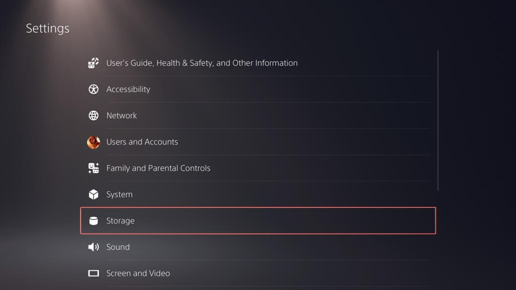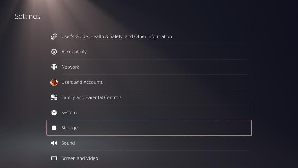 - Ανοίξτε το μενού Ρυθμίσεις του PS5 και επιλέξτεΑποθήκευση.
