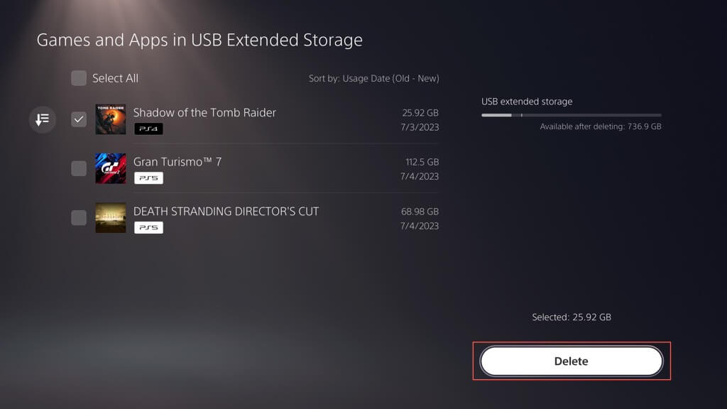 Εάν αρχίσει να γεμίζει η συσκευή αποθήκευσης USB, μπορείτε να διαγράψετε παιχνίδια για να ελευθερώσετε το χώρο. Εδώ είναι: