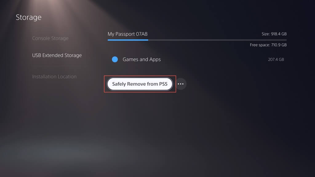 - ΕπιλέγωΕπαρχιακή αποθήκευση USB>Αφαιρέστε με ασφάλεια από το PS5.