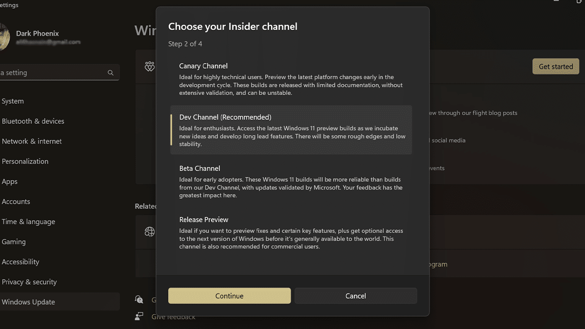 Το πρόγραμμα Windows Insider περιλαμβάνει 4 επιλογές: New Canary Channel, Dev Channel, Beta Channel και Preview Release.