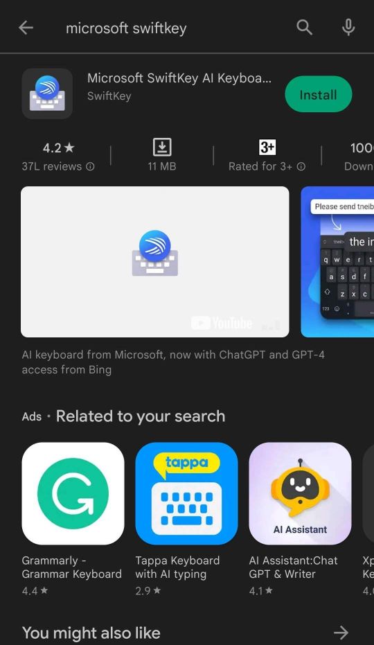 Βήμα 1: Ανοίξτε το Google Play Store, πληκτρολογήστεMicrosoft Swiftkeyκαι πατήστε τοΕισάγωκλειδί.