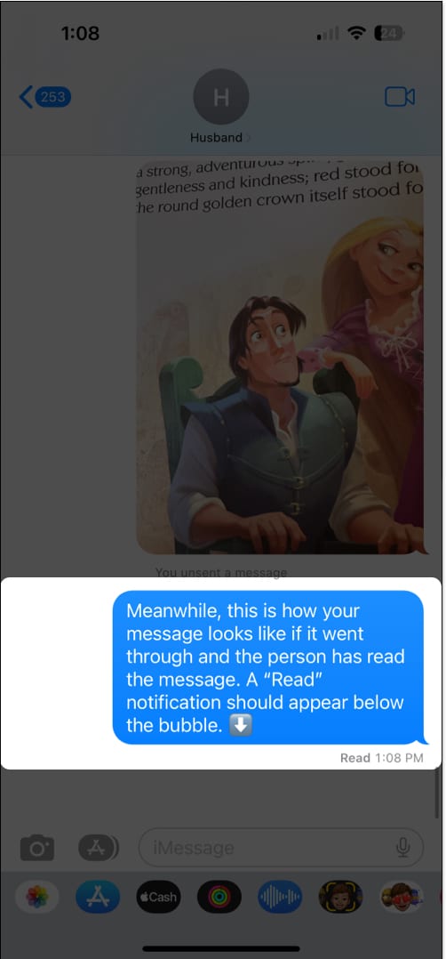 4. Παραδόθηκε ή διαβάστε δεν εμφανίζεται κάτω από το τελευταίο σας έστειλε imessage