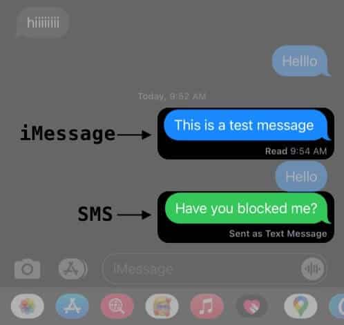 Εκτός από τοΠαραδοθείςΚατάσταση, μπορείτε να δείτε κάτω από μια φούσκα για να δηλώσετε ότι το μήνυμά σας στάλθηκε με επιτυχία στον παραλήπτη. Εάν δεν βλέπετε παραδοθεί, ίσως έχετε μπλοκαριστεί στο iMessage.