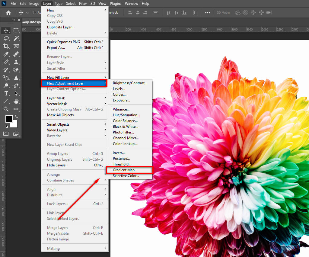 Μέθοδος 2: Δημιουργήστε μια εικόνα ασπρόμαυρη χρήση χρησιμοποιώντας το στρώμα ρύθμισης ασπρόμαυρης ρύθμισης
