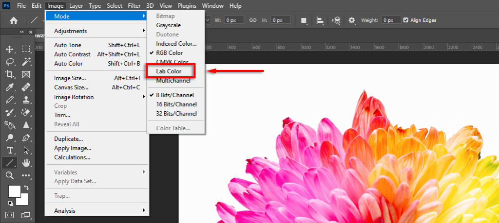 - Ανοίξτε τη έγχρωμη εικόνα στο Photoshop.