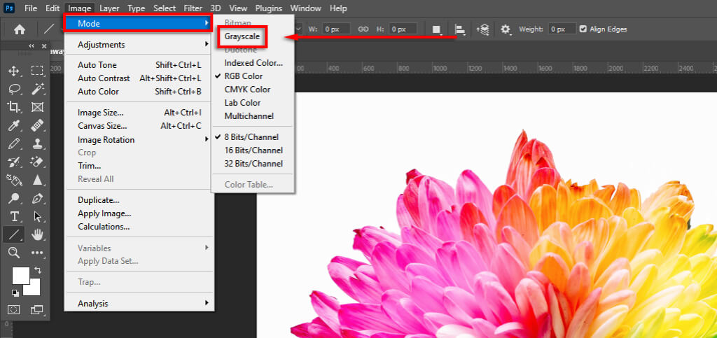 Το Photoshop έχει τώρα ένα χαρακτηριστικό που μετατρέπει αυτόματα τις εικόνες σας σε κλίμακα του γκρι. Το πρόβλημα με αυτήν τη μέθοδο είναι ότι είναικαταστρεπτικός, έτσι δεν μπορείτε να ρυθμίσετε τον κορεσμό και τη φωτεινότητα κάθε χρώματος μετά τη μετατροπή.