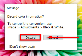 - Ένα παράθυρο διαλόγου θα ανοίξει ρωτώντας εάν θέλετε να απορρίψετε τις πληροφορίες χρώματος. ΕπιλέγωΑπορρίπτω.