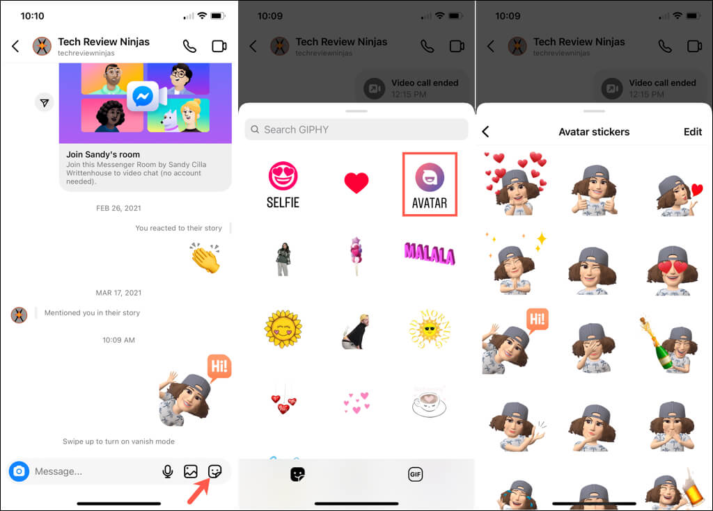 Μπορείτε να χρησιμοποιήσετε αυτοκόλλητα του avatar σας σε μηνύματα και ιστορίες Instagram. Επιπλέον, μπορείτε να τα χρησιμοποιήσετε και στο Facebook και το Messenger. Θα δείτε πολλές εκφράσεις για το avatar σας που κυμαίνονται από μια γιορτή για να αγαπήσετε σε ένα απλό "hi".