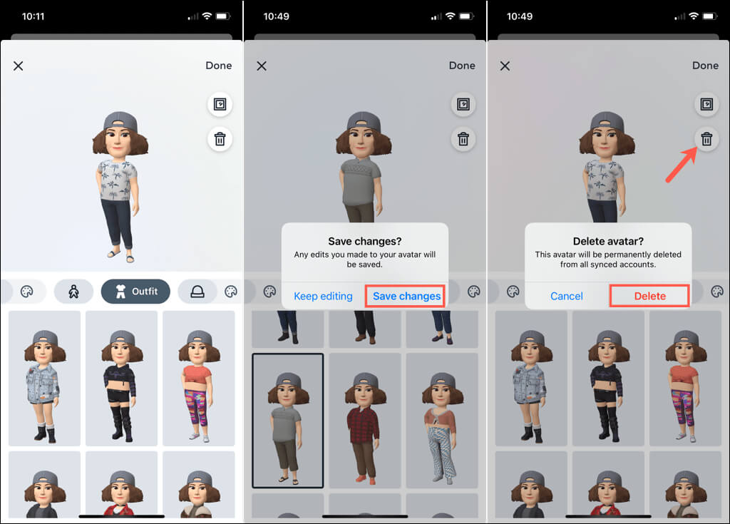 Εάν προτιμάτε να αφαιρέσετε εντελώς το avatar, επιλέξτε τοσκουπιδοτενεκέςΣτην ενότητα προεπισκόπηση και στη συνέχεια επιβεβαιώστε ότι θέλετε να απαλλαγείτε από το avatar σας επιλέγονταςΔιαγράφω.