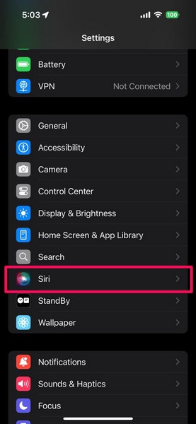2.Εντοπίστε τοΕπιλογή Siriστη λίστα καιΠατήστε το για να ανοίξετε.
