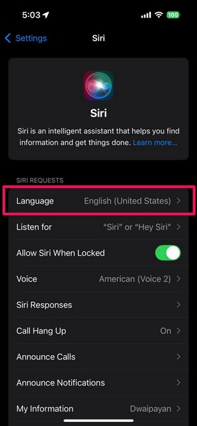 Ως αποτέλεσμα,Εάν μιλάτε στο Siri στα Αγγλικά, θα δώσει την απάντηση στα Αγγλικά, παρά τη γλώσσα που έχει οριστεί στα Αγγλικά και το Χίντι στο iPhone σας στο iOS 18. Έτσι, να το έχετε κατά νου ενώ μιλάτε στο Siri και να τηρήσετε την πρωταρχική κατάσταση για να κάνετε το Siri να μιλήσει Hindi στη συσκευή σας iOS 18.