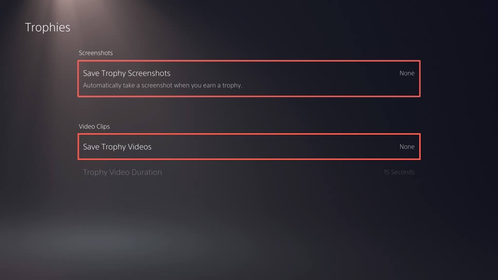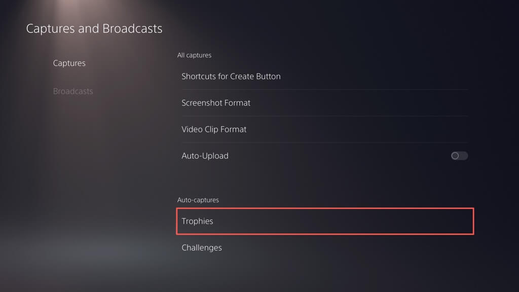 Μπορείτε επίσης να σταματήσετε το PS5 σας να καταγράψετε αυτόματα στιγμιότυπα οθόνης και βίντεο κλιπ από στιγμές όταν λαμβάνετε τρόπαια και πλήρεις προκλήσεις. Να γίνει αυτό:
