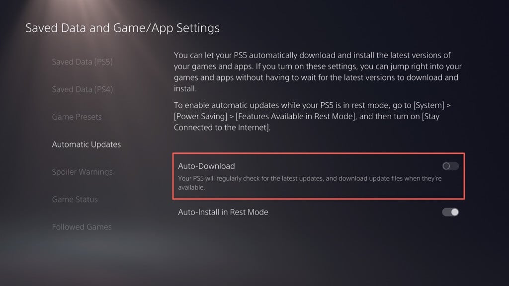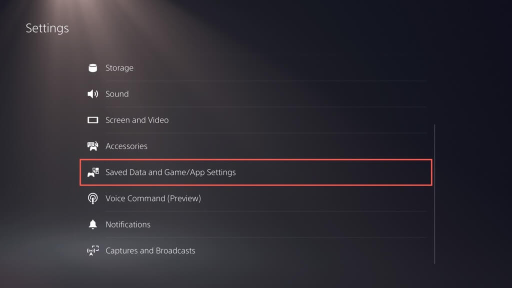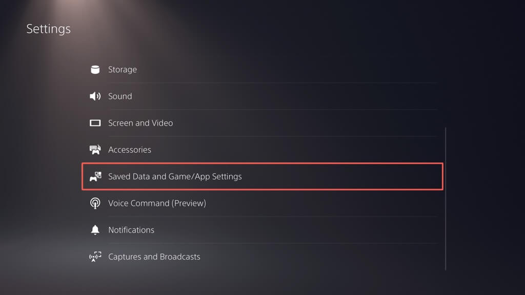 - Επισκεφθείτε την οθόνη ρυθμίσεων του PS5 και επιλέξτεΑποθηκευμένα δεδομένα και ρυθμίσεις παιχνιδιού/εφαρμογής.
