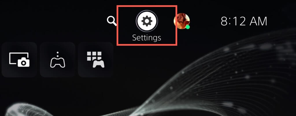 - ΕπιλέγωΡυθμίσειςΣτην επάνω δεξιά γωνία της αρχικής οθόνης PS5.
