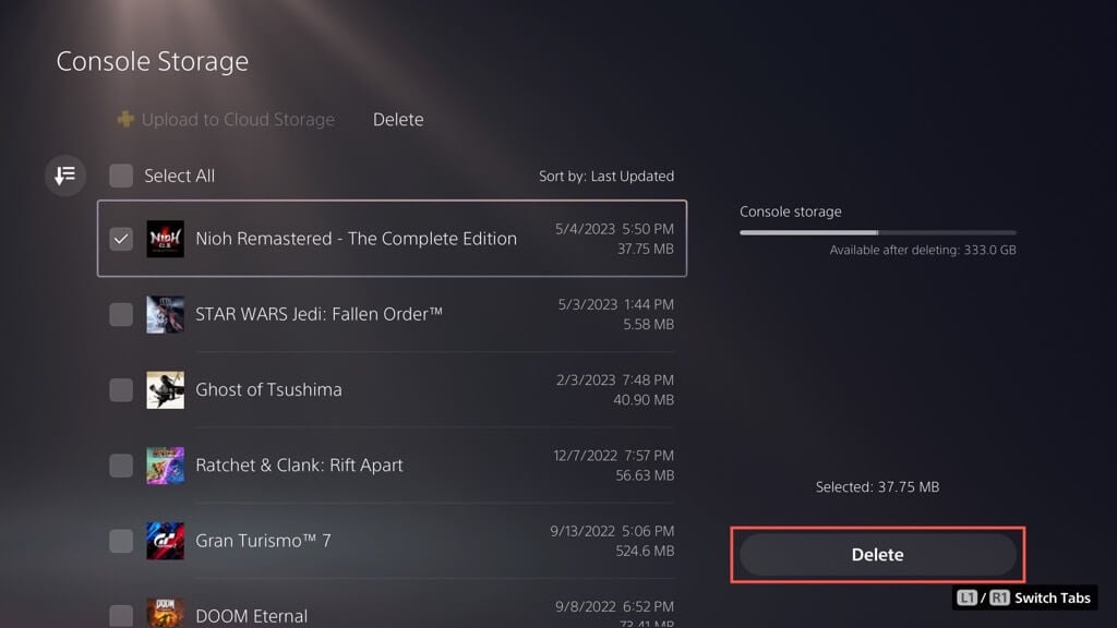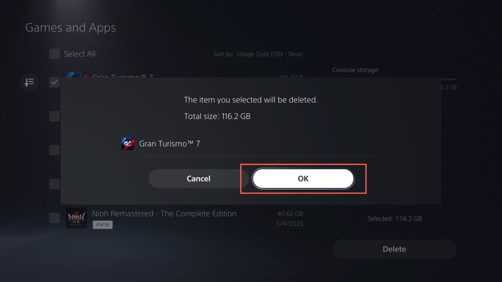 - Περιμένετε μέχρι το PS5 να διαγράψει τα επιλεγμένα παιχνίδια και εφαρμογές.