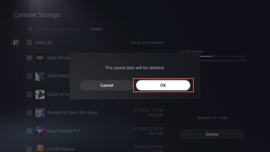- Περιμένετε έως ότου το PS5 διαγράψει τα επιλεγμένα αρχεία.
