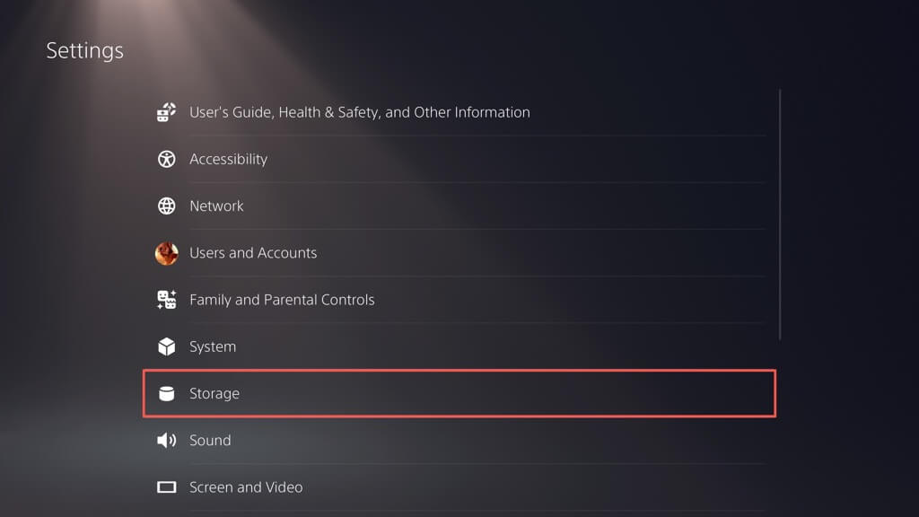 - Ανοίξτε το μενού Ρυθμίσεις του PS5 και επιλέξτεΑποθήκευση.