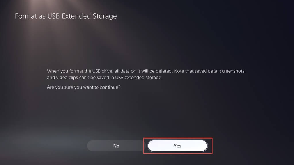 Για να ρυθμίσετε μια μονάδα USB για να λειτουργήσει ως εκτεταμένη συσκευή αποθήκευσης για το PS5, συνδέστε την στη θύρα USB-C στο μπροστινό μέρος ή μια θύρα USB-A στο πίσω μέρος της κονσόλας και στη συνέχεια:
