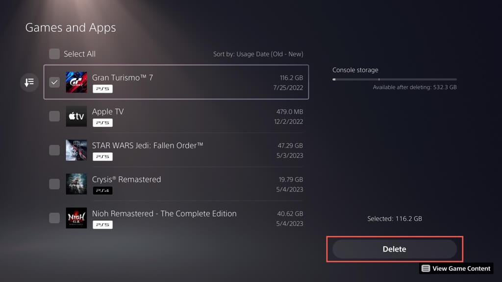 Πώς να διαγράψετε παλιά παιχνίδια και εφαρμογές PS5