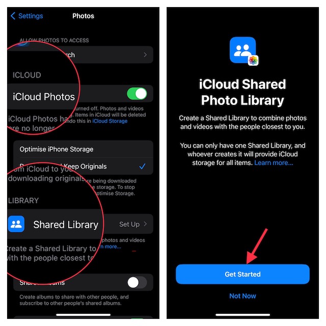 3.Στη συνέχεια, βεβαιωθείτεφωτογραφίες iCloudείναι ενεργοποιημένο. Τότε, πατήστεΚοινόχρηστη βιβλιοθήκη.