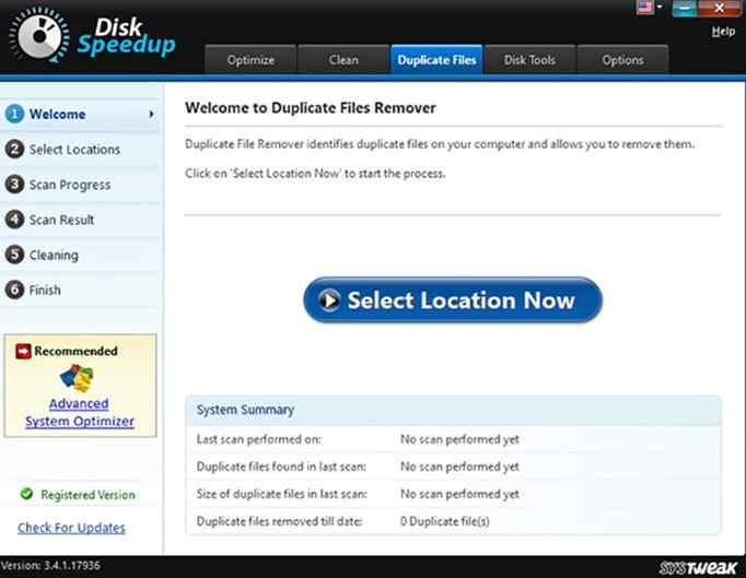 Βήμα 4:Επιλέξτε την καρτέλα Dupplicate Files από τη λίστα των παρακάτω καρτέλες και, στη συνέχεια, κάντε κλικ στοΕπιλέξτε Τοποθεσία τώρακουμπί. Επιλέξτε τους καταλόγους που νομίζετε ότι μπορεί να έχουν διπλότυπα αρχεία.