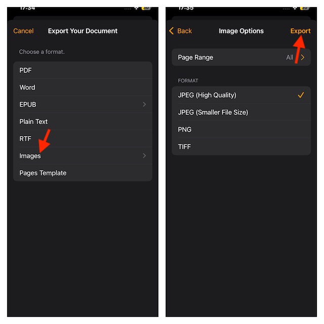 - Μετά από αυτό, επιλέξτε το εύρος σελίδων, τη μορφή εικόνας και πατήστε στην εξαγωγή για επιβεβαίωση.