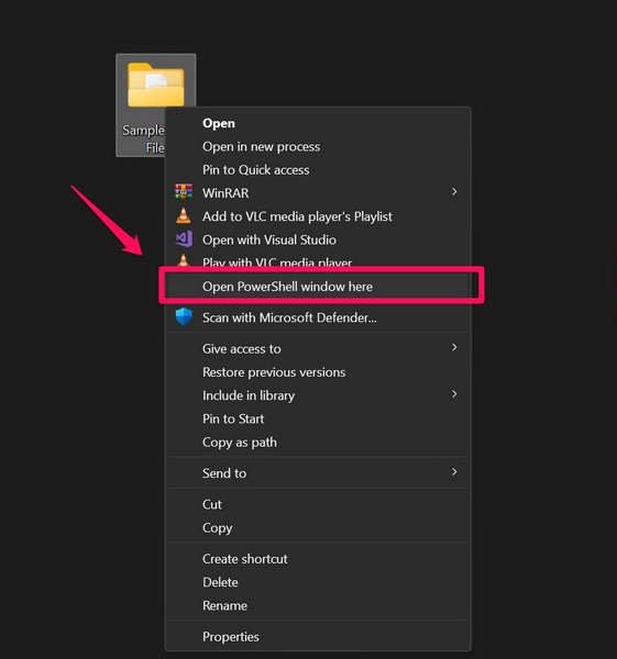 3.Εναλλακτικά, μπορείτεΕντοπίστε το φάκελο με το αρχείο dllότι προσπαθείτε να εγγραφείτε, κρατήστε το κουμπί μετατόπισης, κάντε δεξί κλικ σε αυτό και επιλέξτε τοΑνοίξτε το παράθυρο Command/PowerShell εδώεπιλογή στο μενού περιβάλλοντος.