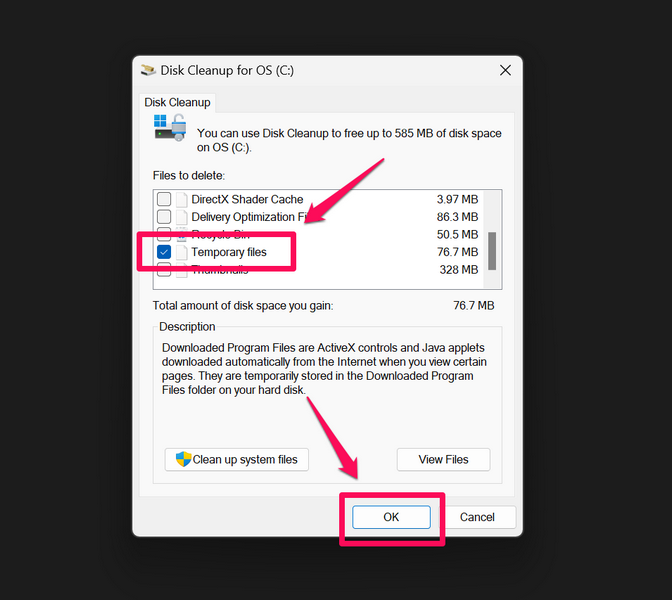 Με αυτόν τον τρόπο, μπορείτε να χρησιμοποιήσετε το ενσωματωμένο βοηθητικό πρόγραμμα καθαρισμού δίσκου στα Windows 11 για να διαγράψετε αρχεία TMP από τη συσκευή του υπολογιστή σας.