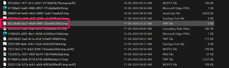 Ακόμα κι αν χρησιμοποιείτε το Microsoft Edge για να ανοίξετε ένα αρχείο TMP που δημιουργήθηκε από αυτό, ίσως να μην βρείτε κάτι χρήσιμο. Θα μπορούσε όλα να είναι jabberwocky κωδικοποίηση ή δυαδικά δεδομένα και πληροφορίες, τα οποία είναι άχρηστα ούτως ή άλλως.