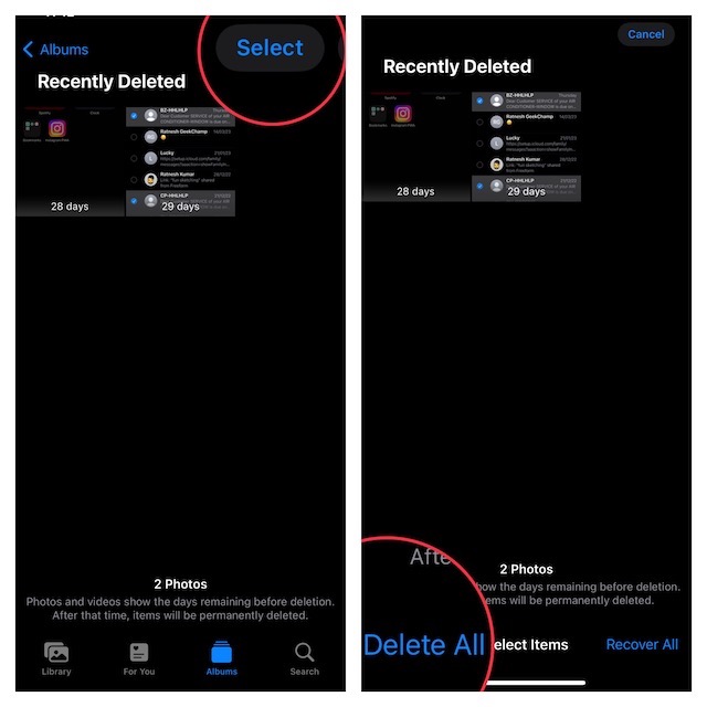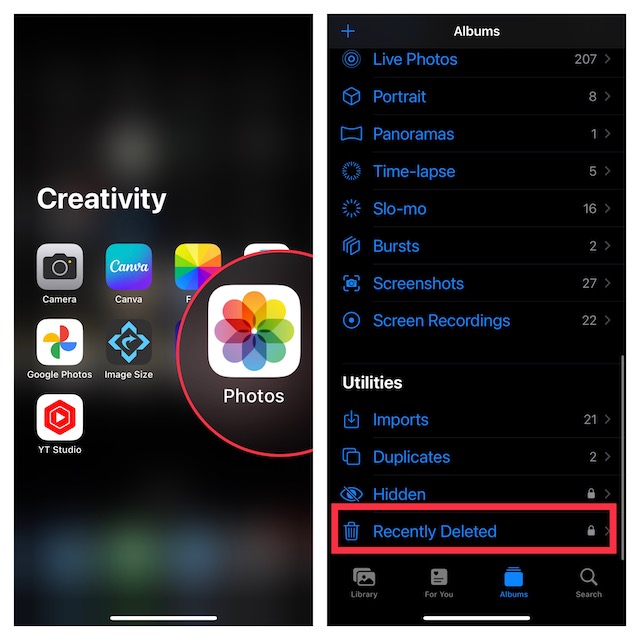 4.Μετά από αυτό, επιλέξτε τοΠρόσφατα διαγραμμένοςάλμπουμ.