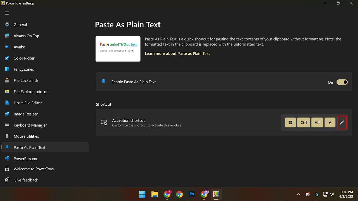 Το Powertoys σάς επιτρέπει να βελτιώσετε τις λειτουργίες των Windows 11. Σε αυτή την περίπτωση, μπορείτε να ενεργοποιήσετε μια συντόμευση πληκτρολογίου για να επικολλήσετε το περιεχόμενο στο πρόχειρο ως απλό κείμενο. Όσο για τον εαυτό μου συνήθως αντιγράφω και επικολλούν απλό κείμενο, ώστε αυτό να μπορεί να έρθει χρήσιμο για τους περισσότερους χρήστες, καθώς αυτό είναι πιο επαρκές και εύκολο στη χρήση.