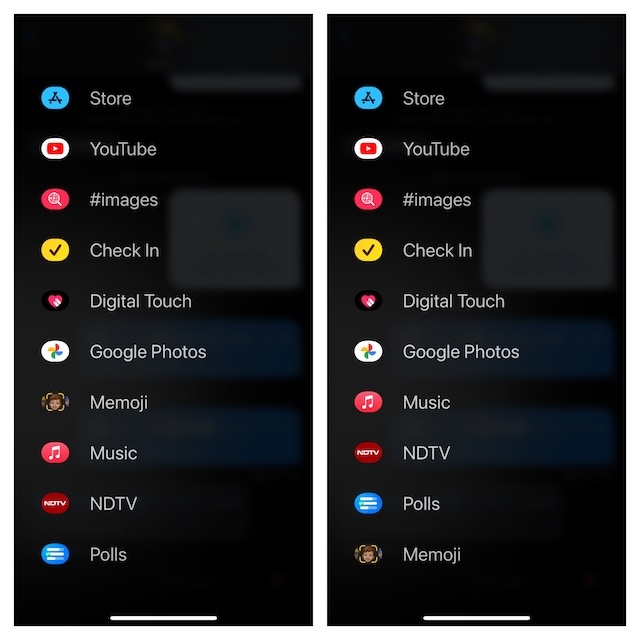 - Στη συνέχεια, θα πρέπει να δείτε μια μακρά λίστα όλων των εφαρμογών imessage μαζί με χαρακτηριστικά διασκέδασης όπως το Digital Touch, το Memoji και πολλά άλλα.