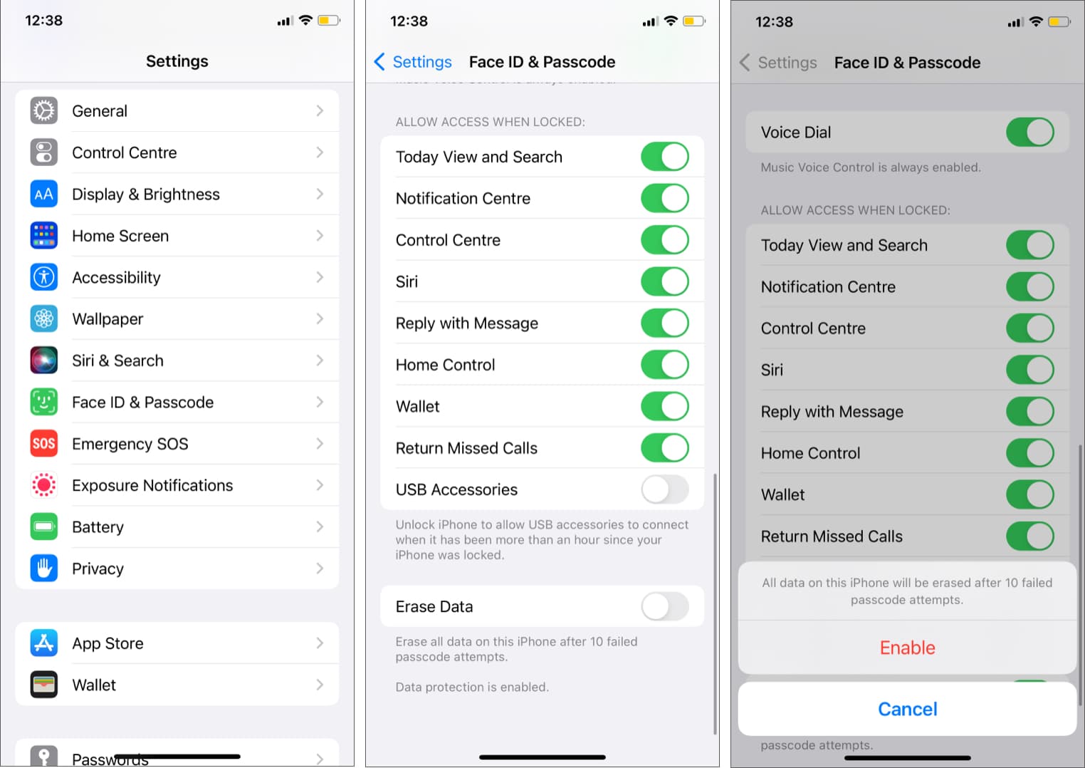Εάν κάποιος προσπαθεί να εισέλθει στο iPhone σας, αλλά εισάγει τον λάθος κωδικό 10 φορές διαδοχικά, το τηλέφωνο θα αυτόματη erase όλα τα δεδομένα. Μην ανησυχείτε. Ο εισβολέας δεν θα εξακολουθεί να μην έχει πρόσβαση στη συσκευή σας, καθώς η κλειδαριά ενεργοποίησης θα είναι ακόμα ενεργή (εάν το εύρεση είναι ενεργό).