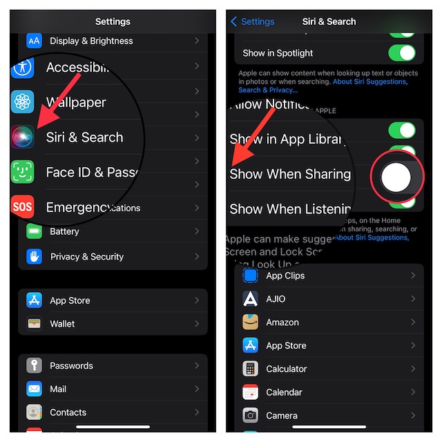 3.Κάτω από την ενότητα "Προτάσεις από την Apple", απενεργοποιήστε την εναλλαγή δίπλαΕμφάνιση κατά την κοινή χρήσηκαι στη συνέχεια να σταματήσετε την εφαρμογή.