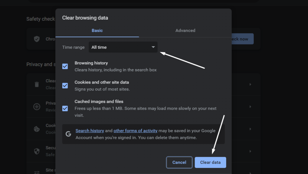 Ένας άλλος πιθανός τρόπος για την εξάλειψη της προειδοποιητικής απάτης ασφαλείας των Windows Defender είναιΚαθαρίστε την προσωρινή μνήμη του προγράμματος περιήγησης ιστού. Αυτό θα ανανεώσει όλες τις ιστοσελίδες που επισκεφθήκατε χρησιμοποιώντας το πρόγραμμα περιήγησής σας και, κυρίως, επιλύστε το πρόβλημα. Έτσι, δοκιμάστε το ίδιο ακολουθώντας τα παρακάτω βήματα και ελέγξτε αν σας βοηθά να απαλλαγείτε από αυτήν την προειδοποίηση με ευκολία: