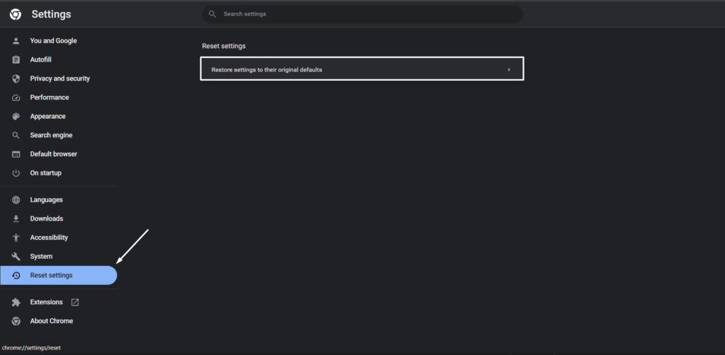 2.Επιλέξτε τοΡυθμίσεις επαναφοράςΕπιλογή από το αριστερό παράθυρο πλοήγησης και, στη συνέχεια, κάντε κλικ στο κουμπίΕπαναφορά ρυθμίσεων στις αρχικές προεπιλογές τους.