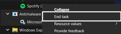 4.Κάντε δεξί κλικ στην συγκεκριμένη διαδικασία στην ίδια ενότητα και επιλέξτε τοΤελική εργασίαΕπιλογή στο μενού δεξί κλικ.