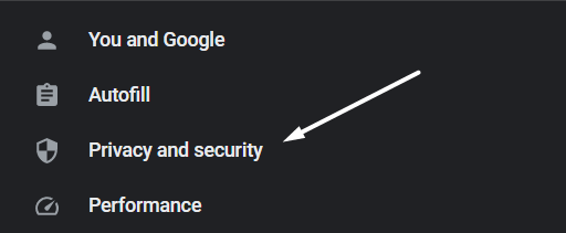 2.ΕπιλέγωΙδιωτικότητα και ασφάλειαστο αριστερό παράθυρο πλοήγησης και ανοίξτε τοΚαθαρίστε τα δεδομένα περιήγησηςτμήμα.