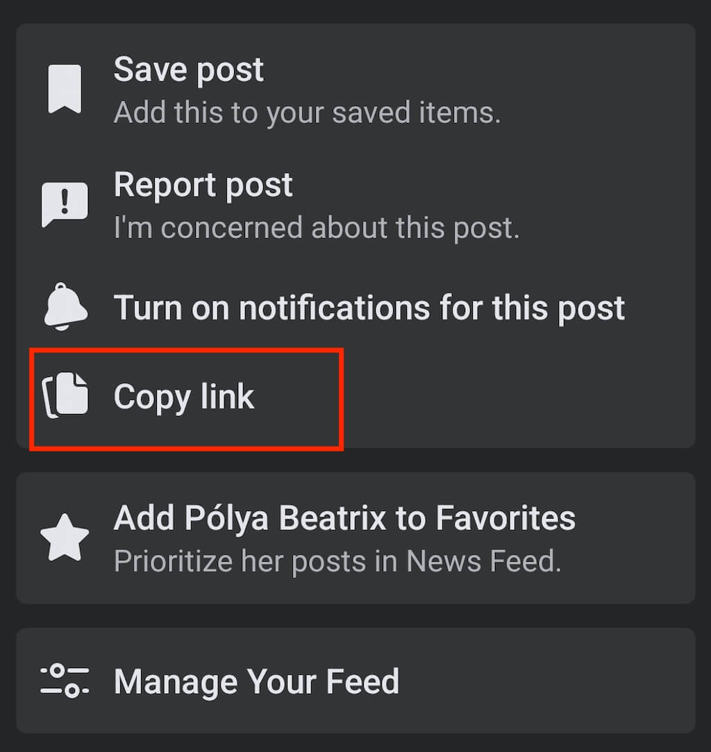 - Αντιγράψτε τη διεύθυνση URL της ανάρτησης. Μπορείτε είτε να κάνετε δεξί κλικ στο σύνδεσμο και να επιλέξετεΑντίγραφοή χρησιμοποιήστε τοCtrl+ντο/CMD+ντο συντόμευση πληκτρολογίουγια να αντιγράψετε τον σύνδεσμο.