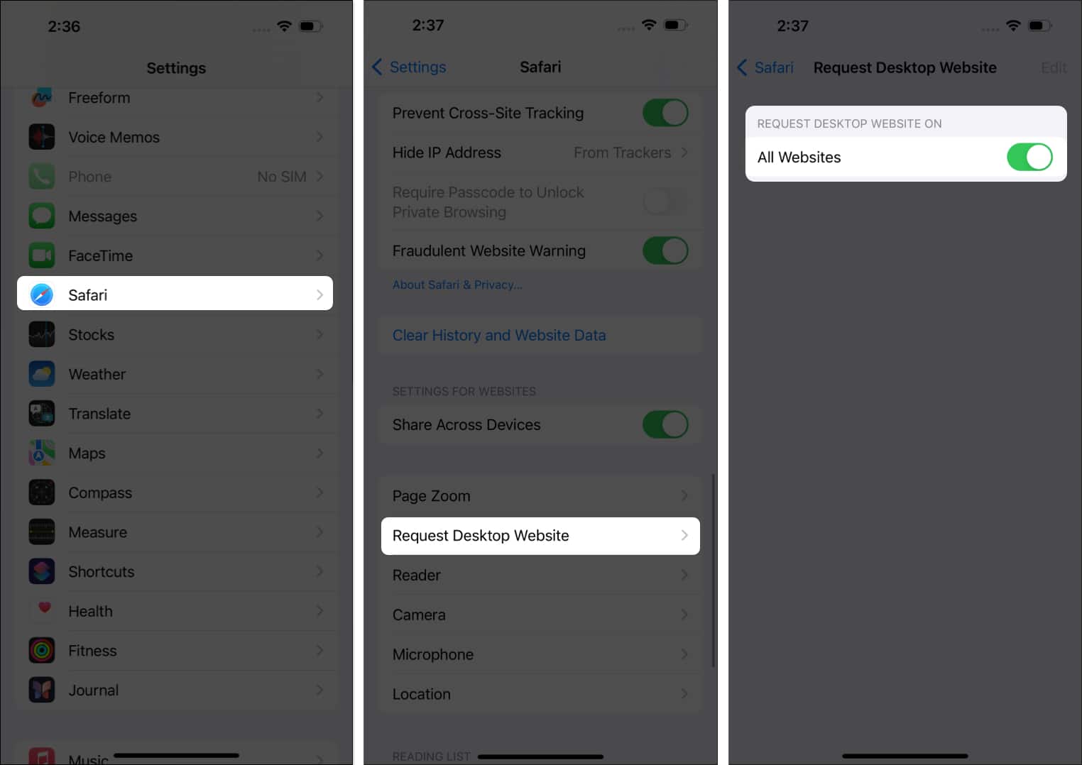 Εάν βρίσκεστε στο iOS 17, κάντε αυτό. ΠηγαίνωΡυθμίσεις→Σαφάρι→Αίτηση επιφάνειας εργασίας, και εναλλαγήΌλοι οι ιστότοποι.