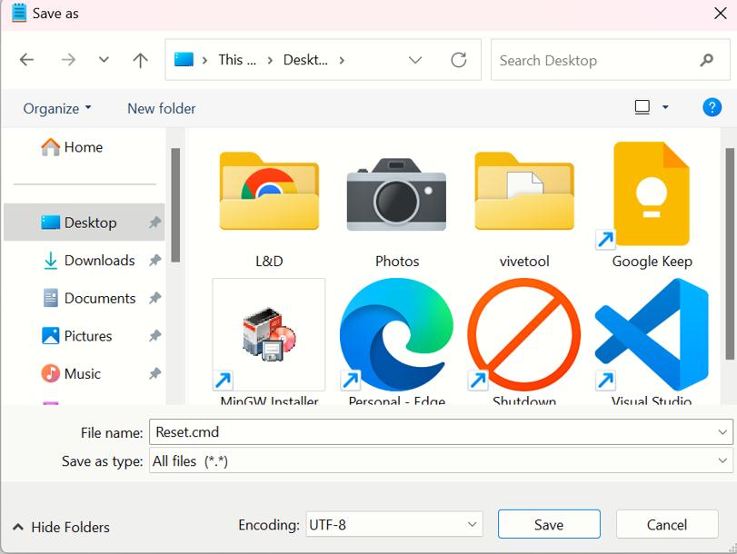 Βήμα 11: ΣτοΌνομα αρχείουΤμήμα, πληκτρολογήστεReset.cmd.